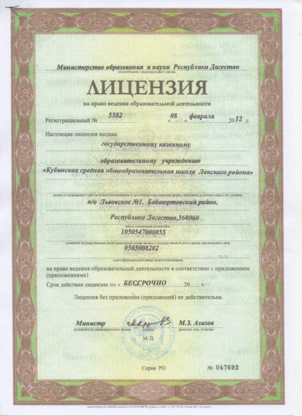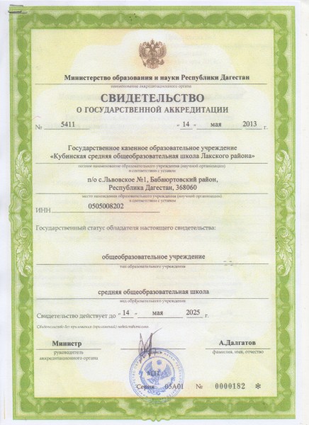 Полное наименование образовательной организации* Государственное казенное общеобразовательное учреждение Республики Дагестан "Кубинская средняя общеобразовательная школа Лакского района"